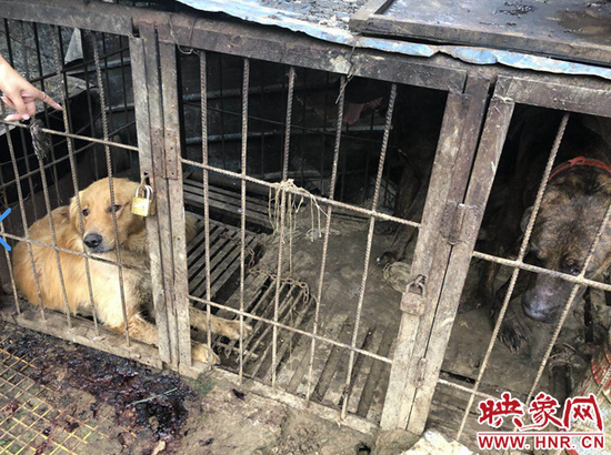 眼前的情景讓人觸目驚心: 銹跡斑斑的鐵籠里關著來歷不明的犬只,地上、溝里到處散落著狗毛、狗骨、狗皮、狗的內臟。地面上血跡斑斑,臭氣熏天。一口燒煮狗肉的大鍋布滿焦炭,一個紙箱里放滿了各種用來麻醉殺害狗狗用的注射器。屠夫就是光著身子的中年男子。當大家問其狗狗的來源時,該男子辯稱是在市場上買的,卻提供不了詳細信息。他同時辯稱說,狗肉是自己吃的。