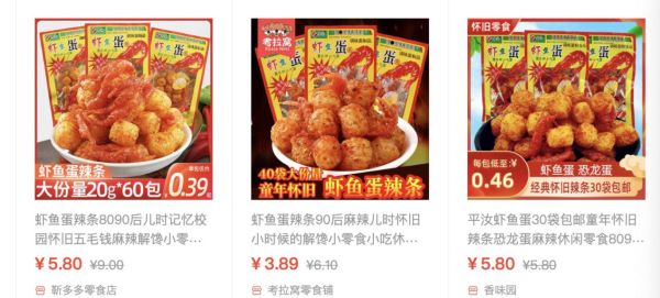 (電商平臺上,商家們給“蝦魚蛋”貼上了8090懷舊經典的標簽。)