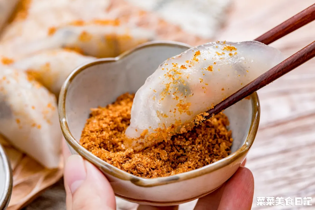 最佳比例我已經幫你們測試好了,木薯淀粉和粘米粉按4:1的重量比最為合適,吃起來有彈性,又不失米香。