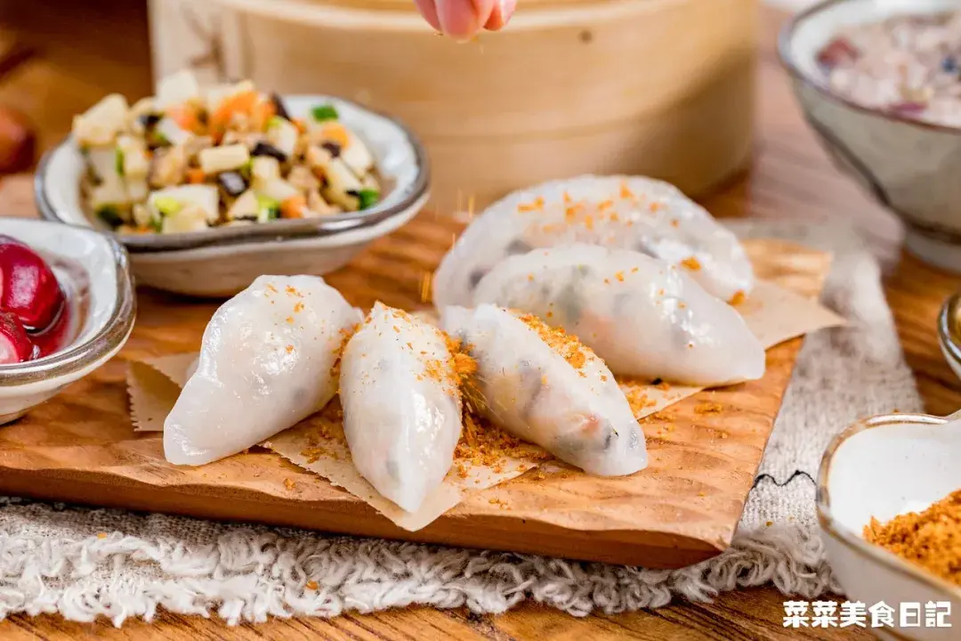 不過南方多種水稻,幾乎不產小麥,于是客家人就用木薯粉和米粉替代面粉,包上山中鮮筍,做成餃子形狀,來縮短他鄉與故鄉的距離。