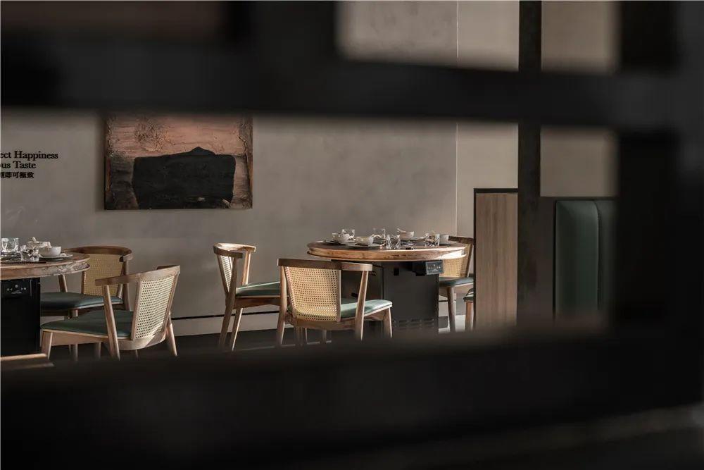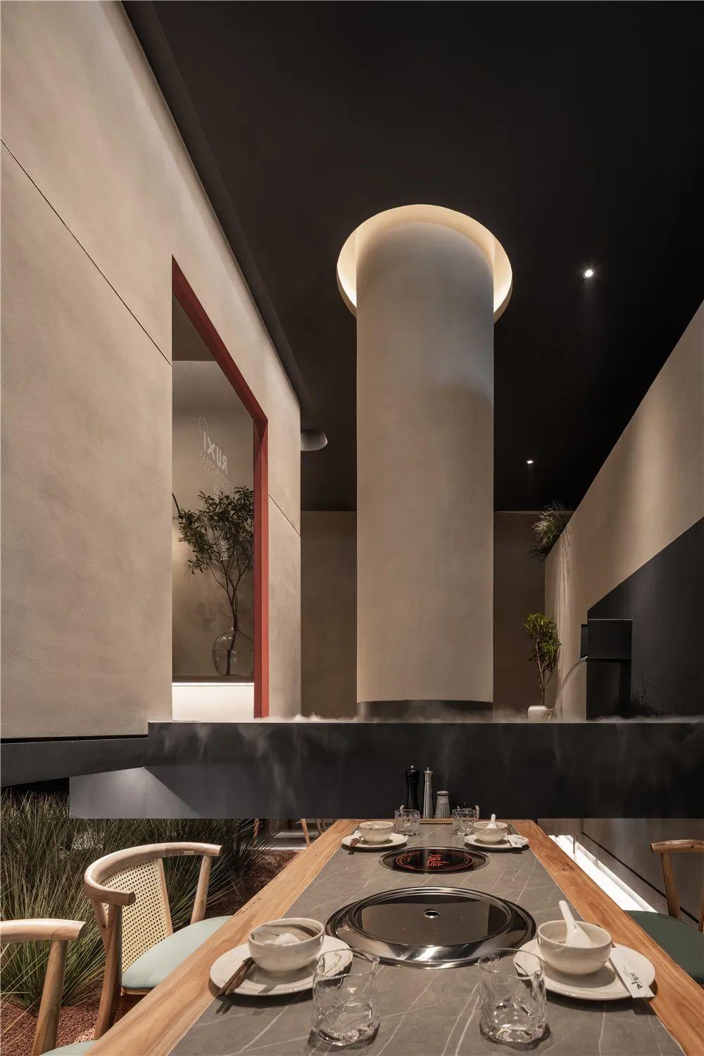 “侘寂”美學的本意在于營造沉靜的氛圍,而餐廳則想更多呈現出一種市井煙火的氣息,空間產生對比的同時也具有戲劇性。餐廳菜系以“粵式火鍋”為核心,在空間和人的內在情感產生共鳴,令人沉浸在其中甚至忘卻時間的流逝,強調寂靜并不是否定市井氣息,而是讓人在孤寂無一物的境界里感受到旺盛的生命力