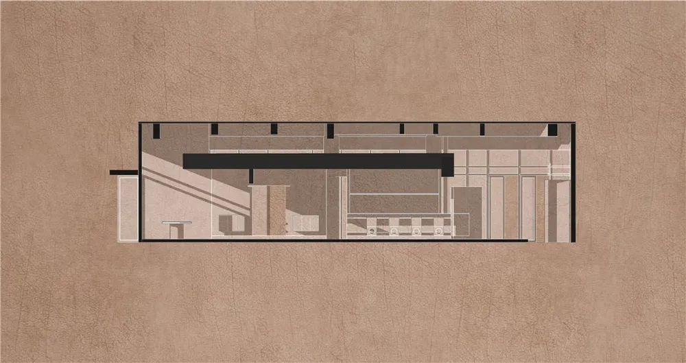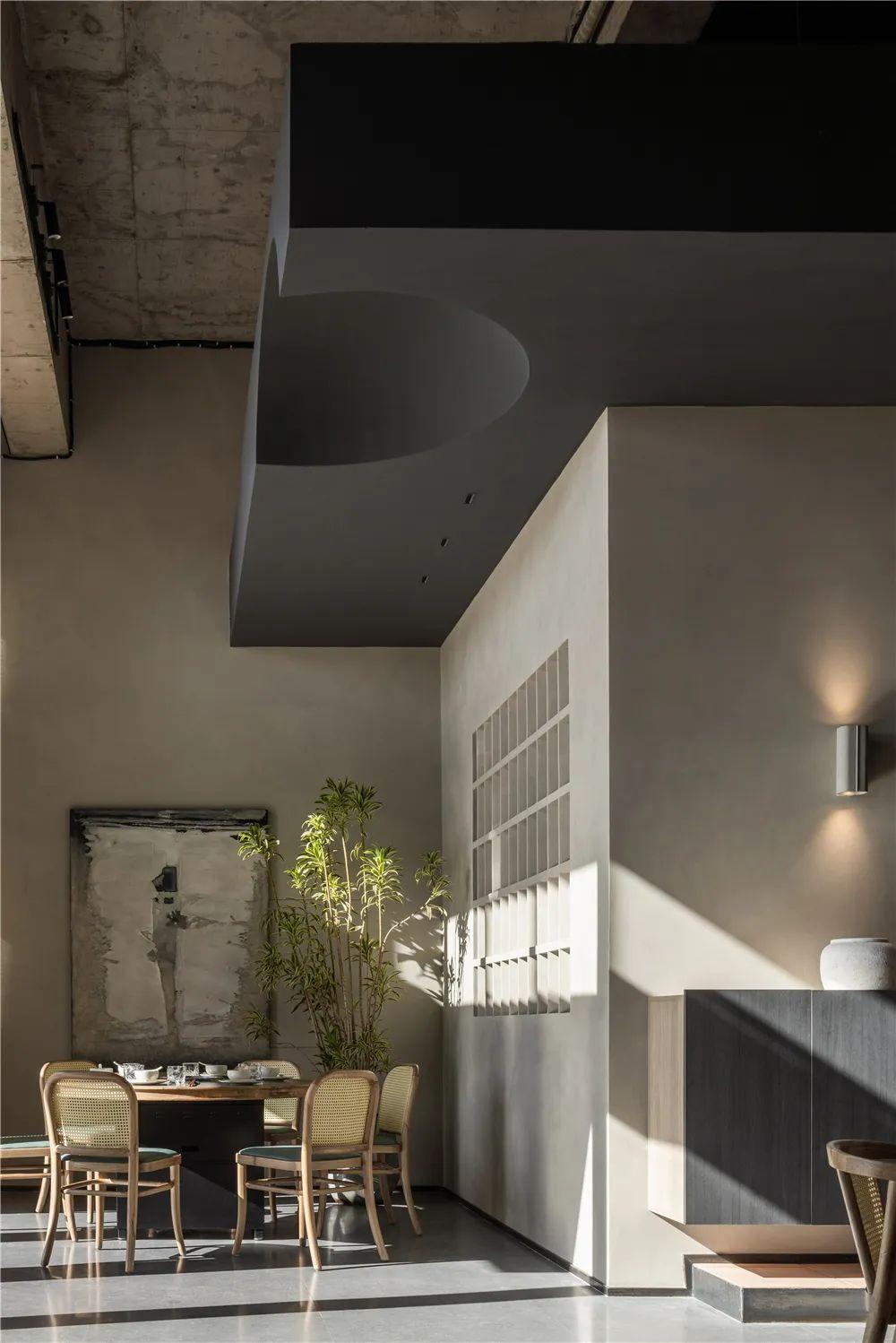 設計中將空間化零為整,打通室內的邊界,將內空間設計漂浮,彼此架構,化身人與自然或宇宙之間更深層次的關系。為了在空間呈現“侘寂”中的陰翳之美,則在滿足照明需求的前提下,盡量降低了室內光強度,在空間內多運用開放界面和透明封閉界面,將引入自然光作為主要照明方式,使自然光以投射、彌漫、消耗等多種方式自由傾灑在空間內。