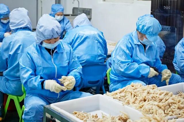 “我一天能做78斤,一個月下來能拿到6000元左右的工資。”在味意位于平陽縣的去骨工廠里,騰蛟鎮溪頭街村村民謝孝輝一邊麻利地給雞爪去骨,一邊笑著說道。在味意,像謝孝輝這樣的去骨工人有1000余名,他們多為工廠所在地周圍的村民,每名工人平均月工資約6000元,最高的可以拿到9000多元,解決了當地大量剩余勞動力的就業問題。