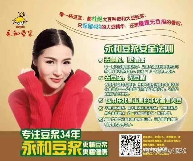 以1982年創立于臺北的永和豆漿為例,其34年的發展歷程專注于餐飲食品事業,積累了大量的營養健康和飲食安全技術,比如其招牌產品永和豆漿,以其特有的16道現代化工藝,在對大豆去皮除芽的同時也去掉了大豆種皮和胚芽中的嘌呤、脂肪氧化酶等有害物質,并經過UHT超高溫殺菌技術和對胰蛋白酶抑制素滅活技術,消除了可能引起脹氣或腹瀉的有害因素,使得豆漿的飲用更加安全。永和豆漿對于飲食安全日益嚴苛的要求是本次能夠獲評315消費者最受歡迎品牌的原因之一。