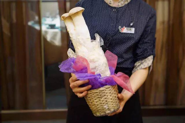 What?正吃著起勁呢。服務員端來這么一個大家伙。活體杏鮑菇!真的是嚇死time君啦~還以為頂多是X寶出售的迷你款。這么大塊頭真是超值了~~