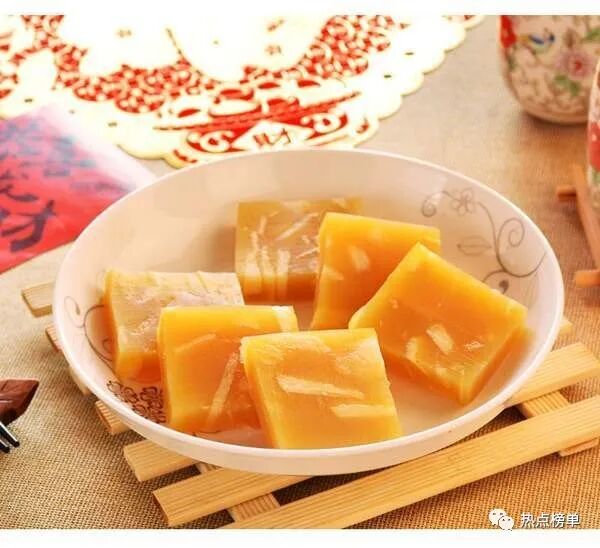 馬蹄糕采用當地的特產馬蹄粉作原料,其糕體色澤金黃透明,爽且富有彈性,帶有一些馬蹄清香之味,特別可口。在飲茶吃飯之后品嘗一兩件馬蹄糕,別有一番清新的滋味。