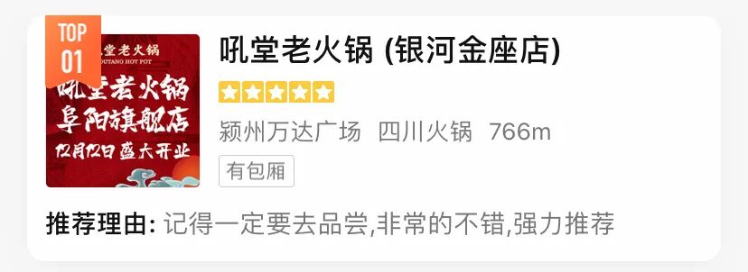 口碑爆棚,滿滿的5星好評!評價的言辭間,阜陽人們對吼堂的喜愛實打實的可見~