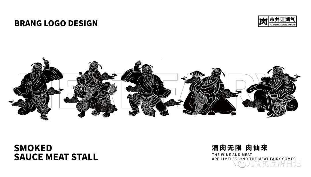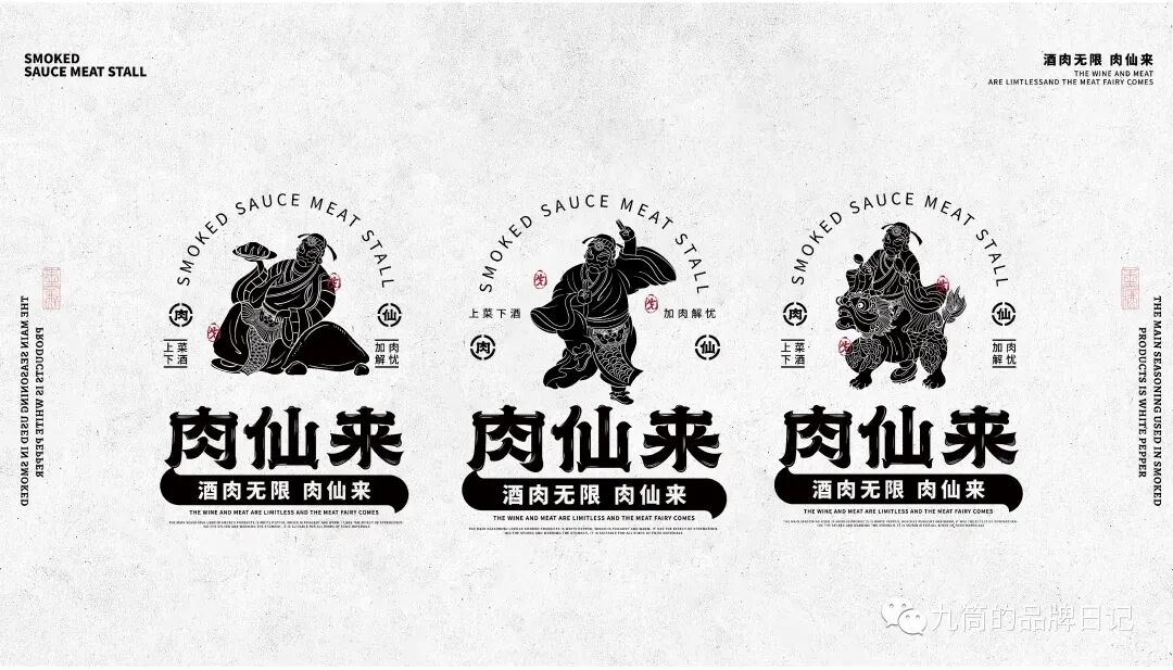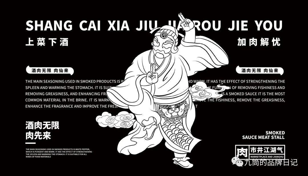 熏醬/肉仙來 并不會讓人聯想到一個具體的事物。為了完善對外傳播體系,我們選擇借勢地標性概念。將大家熟知的門神形象給肉仙賦能。作為整個品牌的超級記憶點,幫助消費者快速識別,傳播。