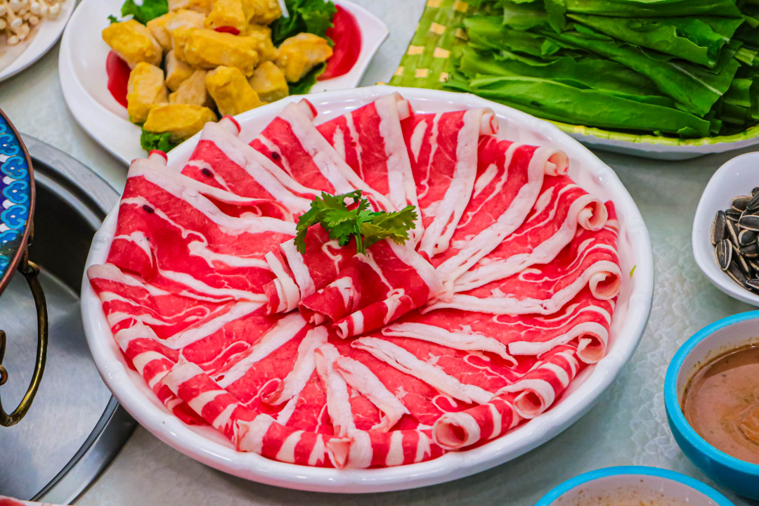 肉質色澤飽滿,片薄而紋理清晰的肥牛卷