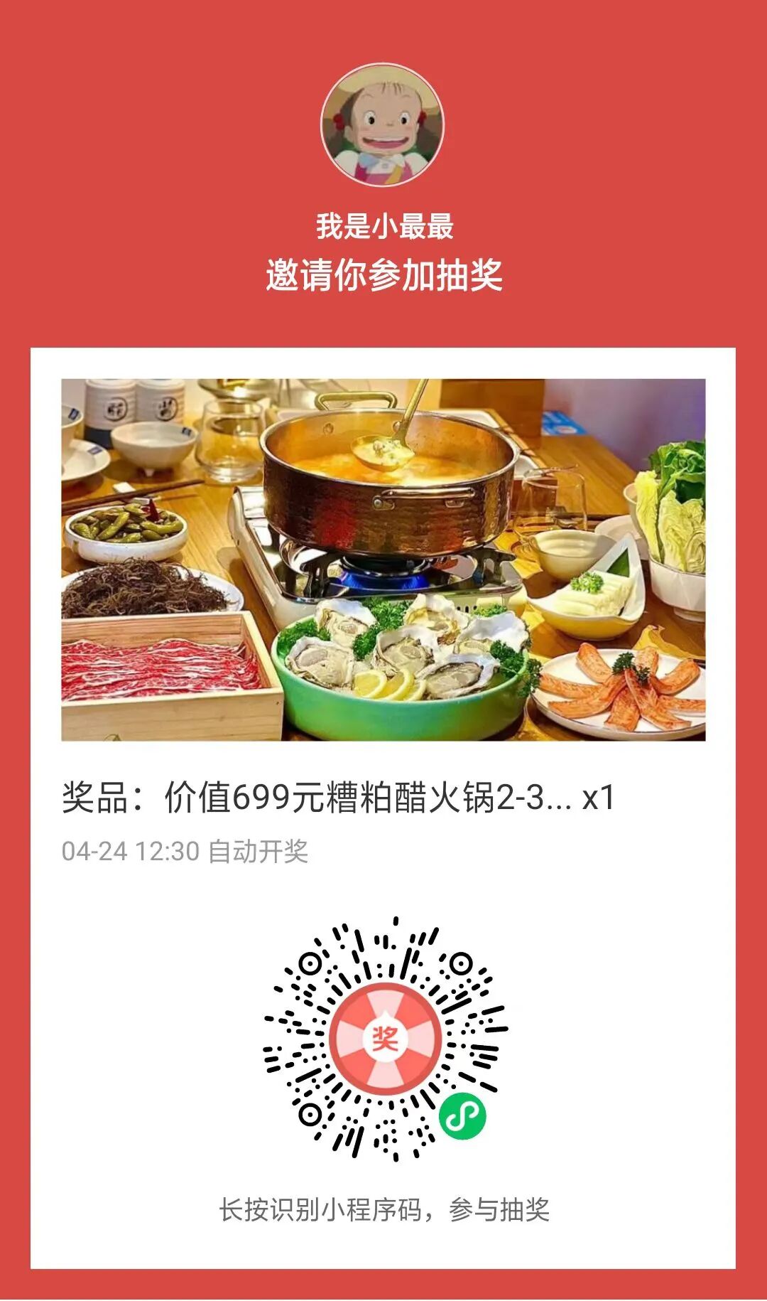 糟粕醋海鮮火鍋 帶你魂穿海南 {福利來襲} 福利? 活動時間:即日起至4月30日 發送本條內容至指定社交平臺 (不屏蔽任何人) 到店用餐即可享受 糟粕醋鍋底6.9折 精品乳山生蠔半價優惠 (一份6只,每桌限點一份) ■注:不與店內其他活動同享 福利? 發送本條內容至指定社交平臺 并添加客服微信 (不屏蔽任何人) 即可參與抽獎 ▼長按下方二維碼,添加客服微信 ■開獎時間:4月24日12:30 ■注: ①中獎者請于4月30日前至蟹廬(劇院路66號)兌獎,兌獎前請提前預約 ②兌獎時請出示發放記錄,開獎前和兌換時刪除無效,未提前添加客服微信無效分組可見無效 ③獎品由第三方機器人抽取,幾率隨機,介者勿參與 ▲以上活動經商家確認,如有疑問直接咨詢商家,與平臺無關。 作為一個從業多年的美食編輯,火鍋是小最最一直覺得都大同小異,沒什么講頭的品類,沒想到前兩天在明月湖吃到一家店,刷新了我對火鍋的想象! 一鍵切換海南美食頻道 蟹廬新品·糟粕醋海鮮火鍋