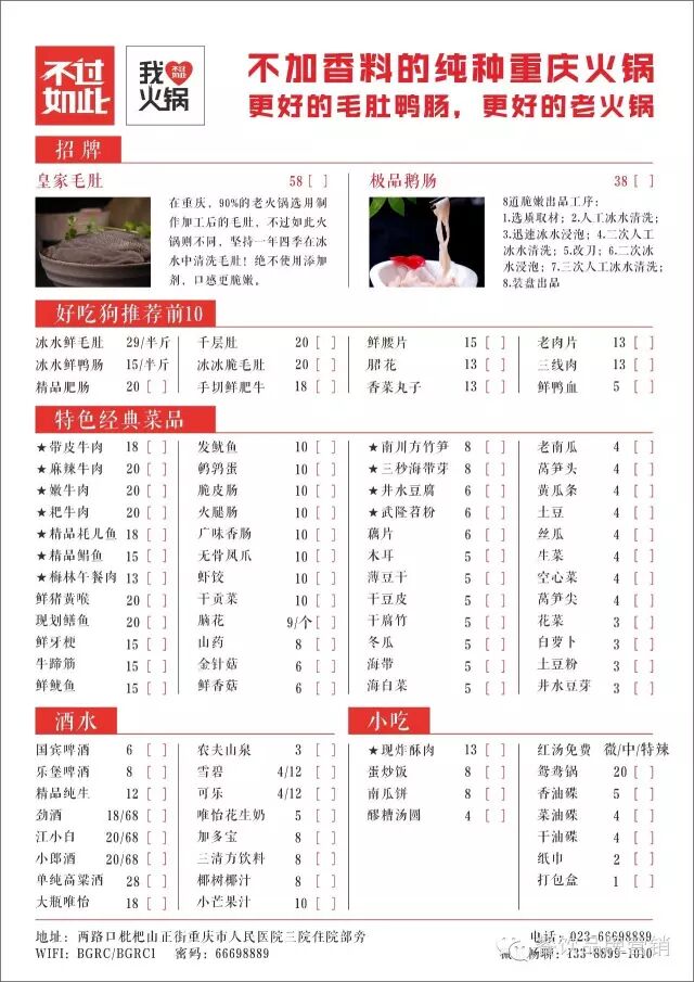 不過如此火鍋聚焦重慶火鍋點擊率最高的毛肚鴨腸,研發出冰水鮮毛肚、冰水鮮鴨腸兩款制作工藝獨特、性價比高的招牌菜,讓客人喜歡、讓請客的人有面子。因為點擊率高,讓更多客人有機會感受招牌菜的魅力。