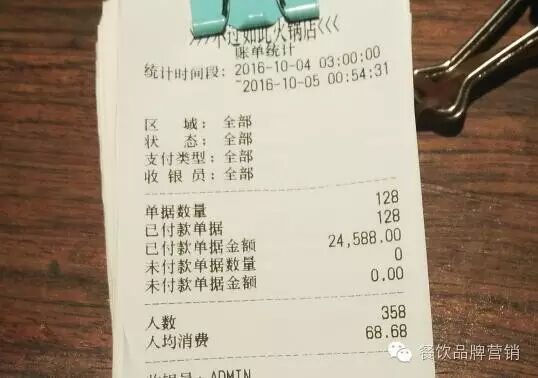 然而,開業短暫火爆之后,卻一直沒能像大家之前想象的樣子,生意一天不如一天,最差的一天只接待了3桌共8位顧客,總營業額只有382元。這一天是2016年5月10日,距離1月10日正式營業整整四個月,堪稱不過如此火鍋史上最黑暗的一天。