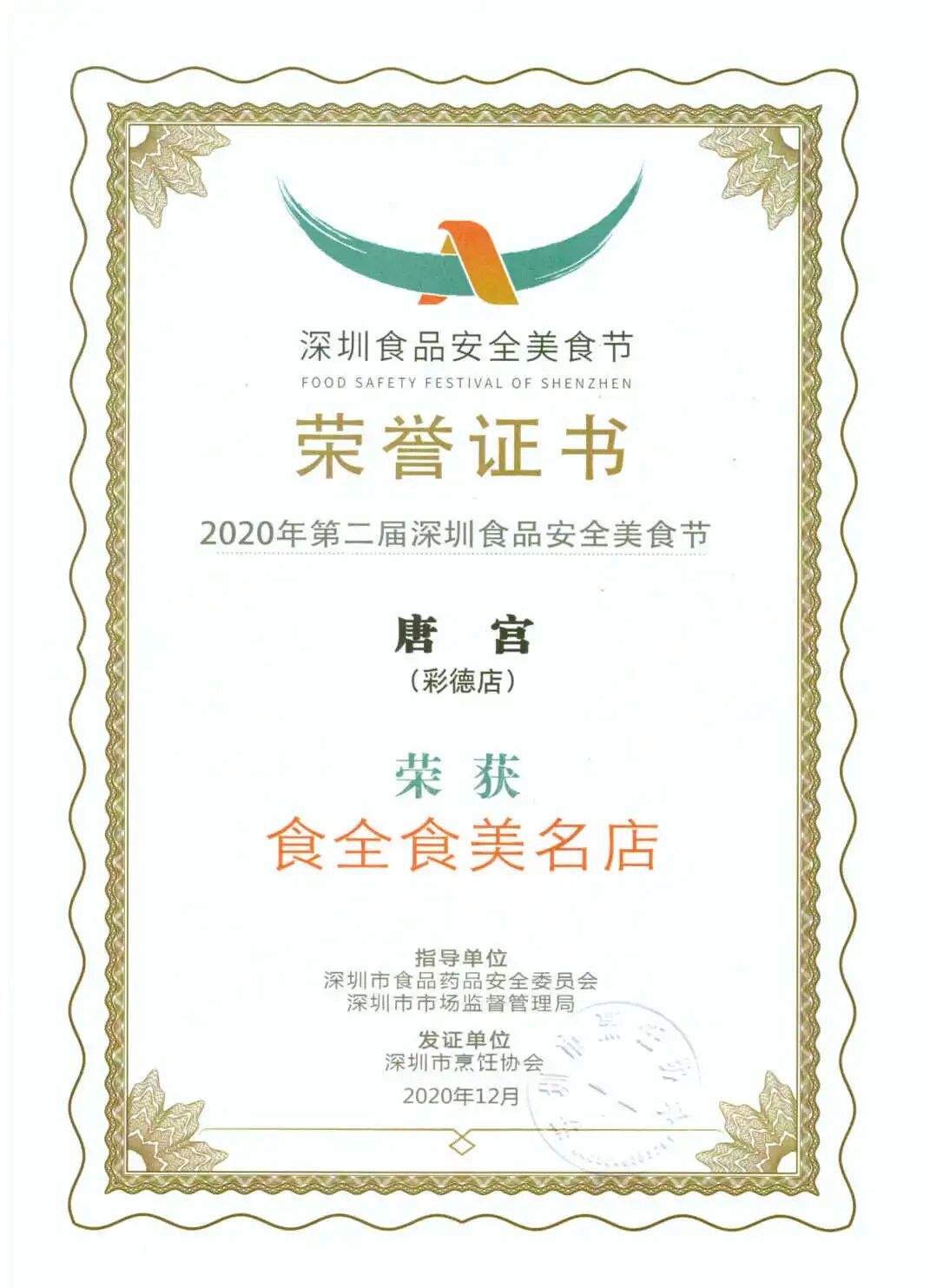 唐宮榮獲 2020中國粵菜餐飲品牌TOP30 唐宮榮獲中國飯店協會授予“2020中國粵菜餐飲品牌TOP30”獎項,本獎項是依據《2020中國粵菜數字餐飲消費報告》和互聯網餐飲門店消費數據,按照企業營業收入、消費口碑、環境和服務指數、品牌影響力等要素排名。 頒獎儀式于2020年12月3日在第二十一屆中國美食節粵港澳分會場——“2020中國餐飲業品牌大會深圳峰會暨中國飯店協會青年企業家工作委員會2020年會”上舉行。 本次美食節粵港澳分會場的其中一個目標,是要傳承粵菜文化及經典技藝,打造地標美食和地標食材品牌,培養符合新時代餐飲業高質量發展的高技能“粵菜師傅”,推動粵港澳大灣區餐飲業高質量發展。 中國飯店協會副會長張景富在致辭中表示,雖然年初的新冠疫情讓我國餐飲業成為受損最嚴重的行業之一,但疫情過后,我國餐飲業在品牌化、精準定位、商業模式、數字化以及綠色化五個方面有更高的提升。后疫情時代,我國餐飲行業呈現兩極分化模式,頭部企業憑借系統性優勢地位穩固,品牌化加強;小店憑借靈活機動性保證市場活力與份額。企業通過產業鏈上的有效資源互換降低資產成本,通過內部的精細化管理提高效率。 中國飯店協會副會長、廣東烹飪協會會長余立富在致辭中也表示,在今年疫情的大背景下,10月份全國餐飲收入遞增年內首次轉正,說明國內的餐飲信心逐步恢復,市場對餐飲業長期向好的信心沒有改變,未來餐飲消費將向綠色、健康、安全發展,新模式、新業態成為行業下一步的創新重點。 延伸閱讀: 美食節︱2020中國餐飲業品牌大會深圳峰會 唐宮 榮獲2020年第二屆深圳食品安全美食節 食全食美名店 唐宮榮獲深圳巿烹飪協會頒發“2020年第二屆深圳食品安全美食節-食全食美名店”榮譽。此獎項由深圳巿食品藥品安全委員會和深圳巿巿場監督管理局擔任指導單位,由網絡訂餐平臺、行業協會、金融機構等活動主要參與方,根據市場監管數據、平臺用戶口碑評價信息、行業協會評審標準等多項標準制定,以食品安全為導向,確立行業發展坐標與標桿。 頒獎禮于2020年12月5日在2020年第二屆深圳食品安全美食節閉幕式上舉行。美食節以“美食+安全”的理念,通過向市民提供安全、美味、健康、環保的美食體驗,推動食品安全科普,營造“食品安全 共治共享”氛圍,同時助力消費信心恢復,促進餐飲企業復蘇,強化深圳打造國際一流的食品安全城市形象。 深圳彩德唐宮店長陳建(左8)代表領獎 深圳市食品藥品安全委員會辦公室副主任、深圳市市場監督管理局黨組成員、副局長單友亮在致辭中表示,深圳食品安全美食節的成功舉辦,是深圳實施食品安全戰略,打造市民滿意的食品安全城市取得的重要成果之一。 深圳市烹飪協會常務副會長劉永忠也表示,深圳食品安全美食節全方位展現了深圳美食文化魅力,營造了“美食深圳 吃的放心”的美食氛圍,有效促進深圳美食消費和食品安全工作提升,推動深圳美食產業創新發展。 延伸閱讀: 2020年第二屆深圳食品安全美食節閉幕式 唐宮使命 以盛唐文化為根,以現代管理為本 立幸福餐飲典范,創百年國際品牌 點擊↙“閱讀原文”,進入唐宮商城