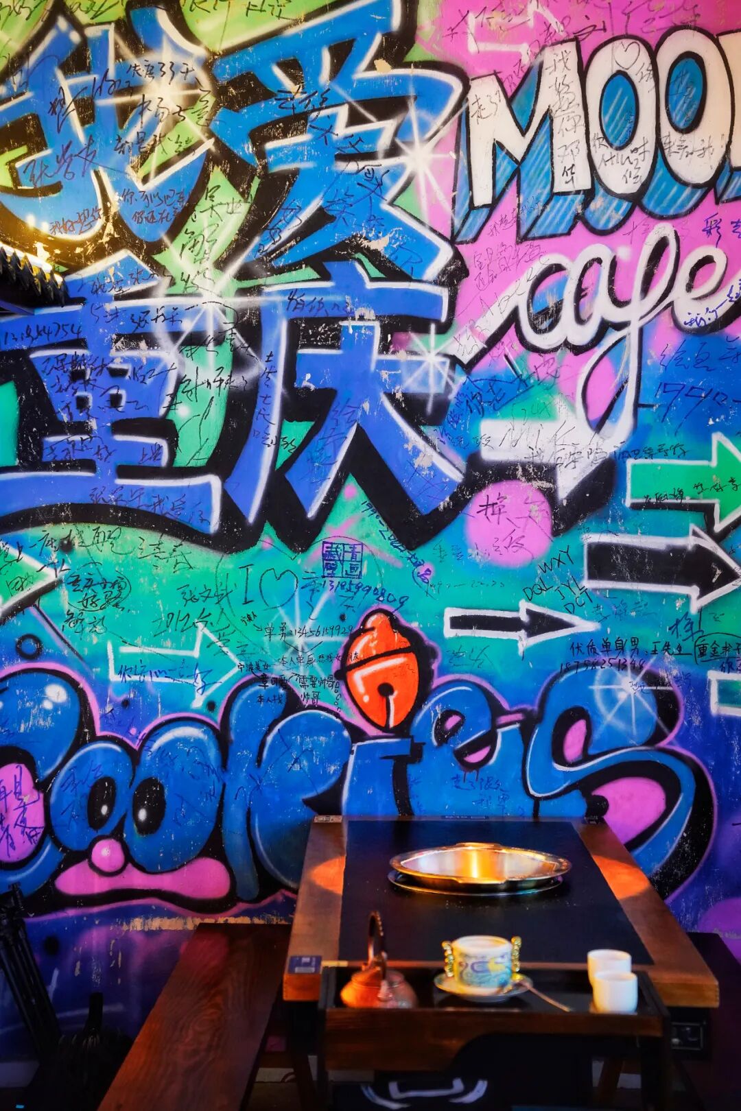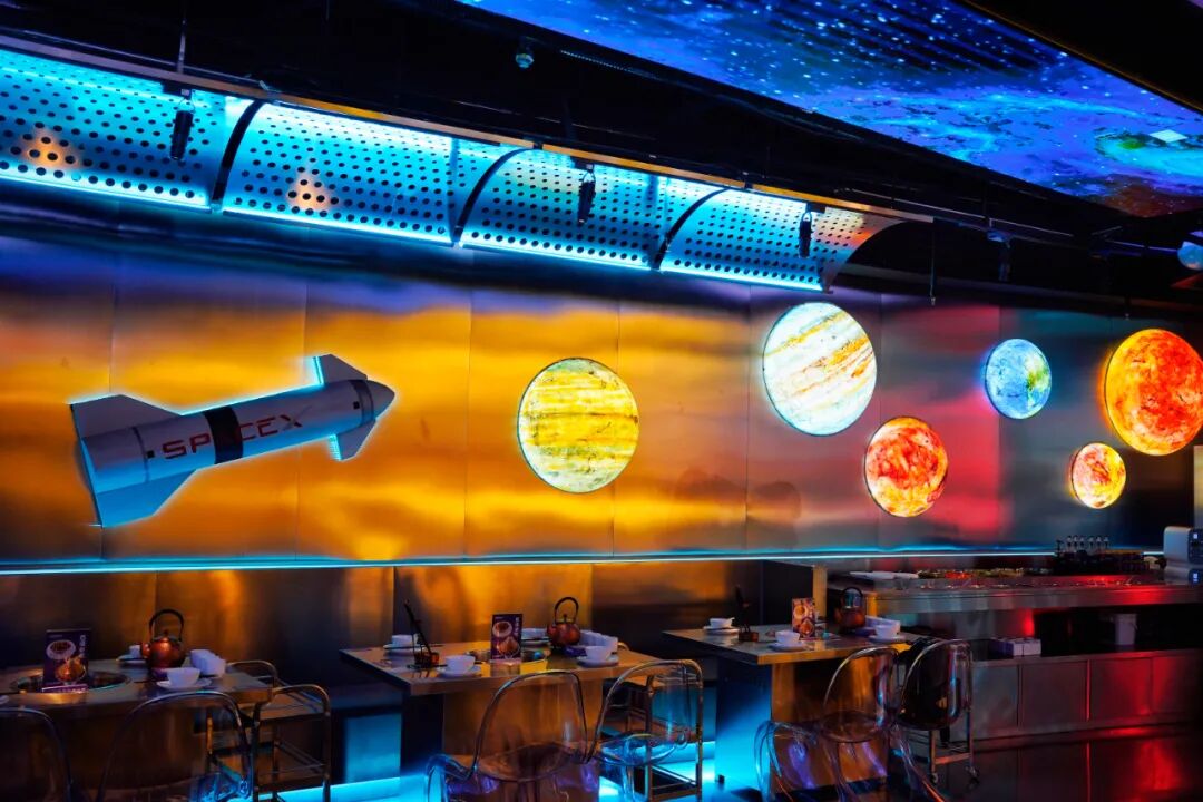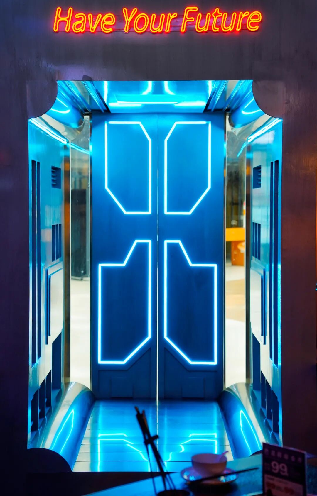 在充滿未來感的霓虹燈下吃火鍋,【巴適·江湖火鍋】做到了!賽博朋克的建筑風格和老重慶火鍋的時空碰撞,進門就是撲面而來的新鮮感~