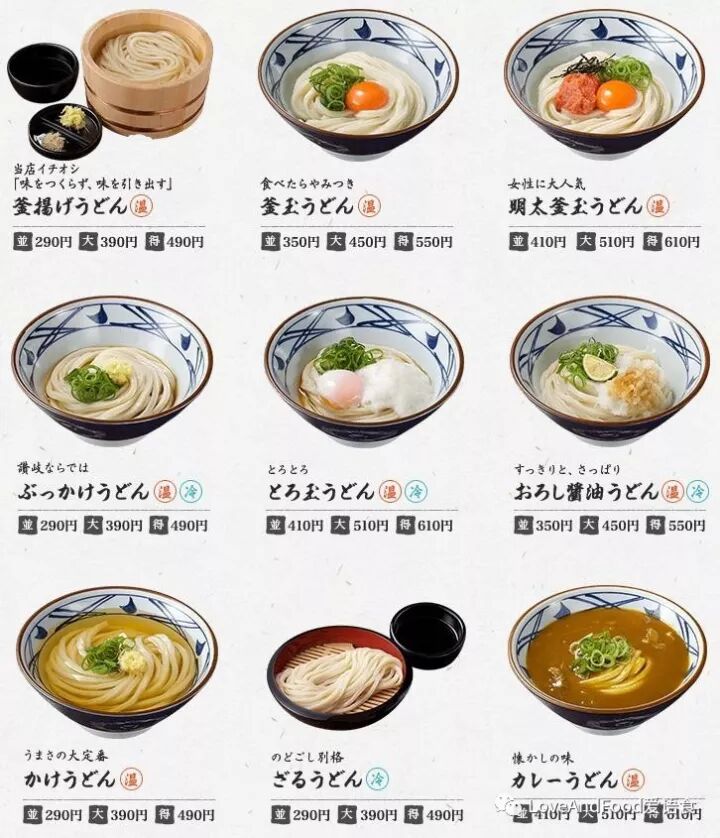 店鋪以 釜揚げうどん及價格便宜非常有名,釜揚げうどん就是一種帶煮面湯的烏冬吃法,表面有粘度,放湯的時候長短對面的口感會隨之變化(一般烏冬面煮完后要過冰水,使面呈現有勁道的口味,面表面粘度下降,口感偏硬)。店鋪多開在商場或者大食代廣場中。