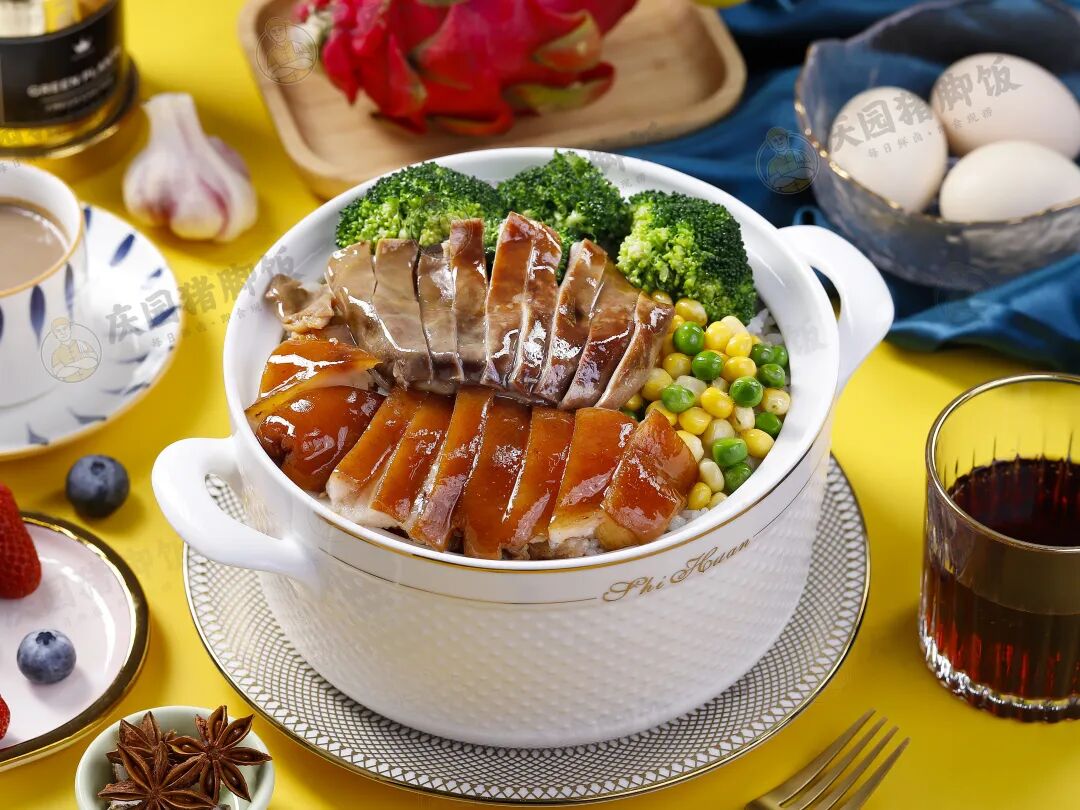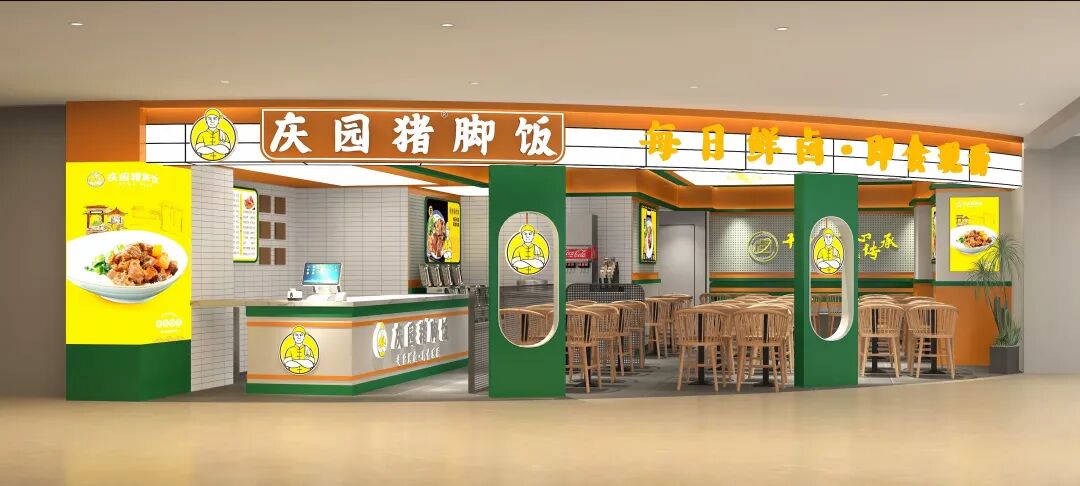 而為了保證足夠的翻臺效率。慶園豬腳飯的門店一定要選在人流量密集的消費商圈或寫字樓商圈。
