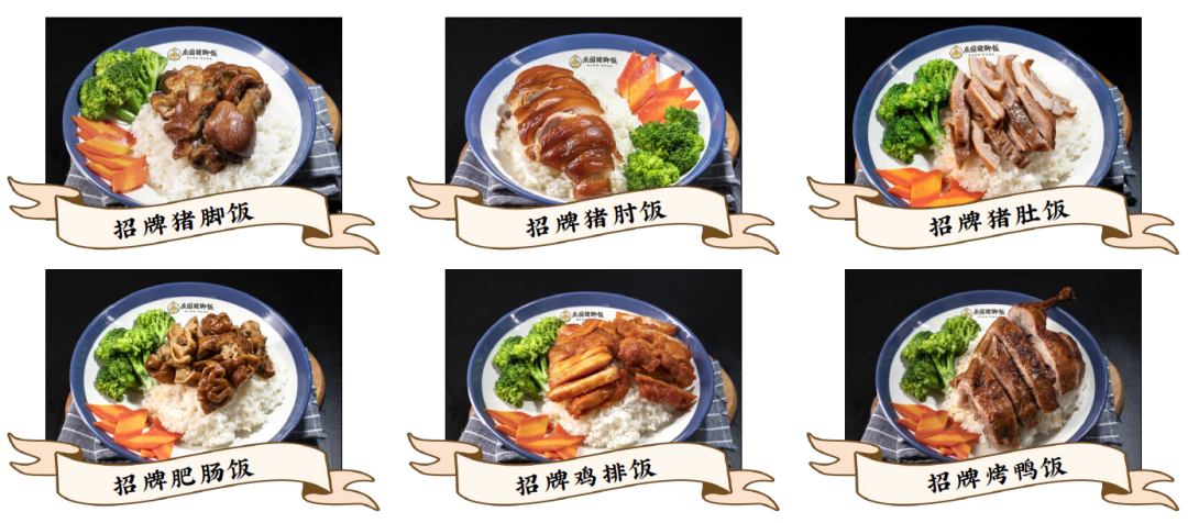 于是,宋洋開始重新梳理產品,只留了以豬腳飯、豬肘飯、豬肚飯、肥腸飯、雞排飯、烤鴨飯及其組合為主的米飯。