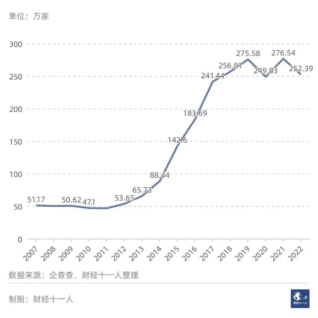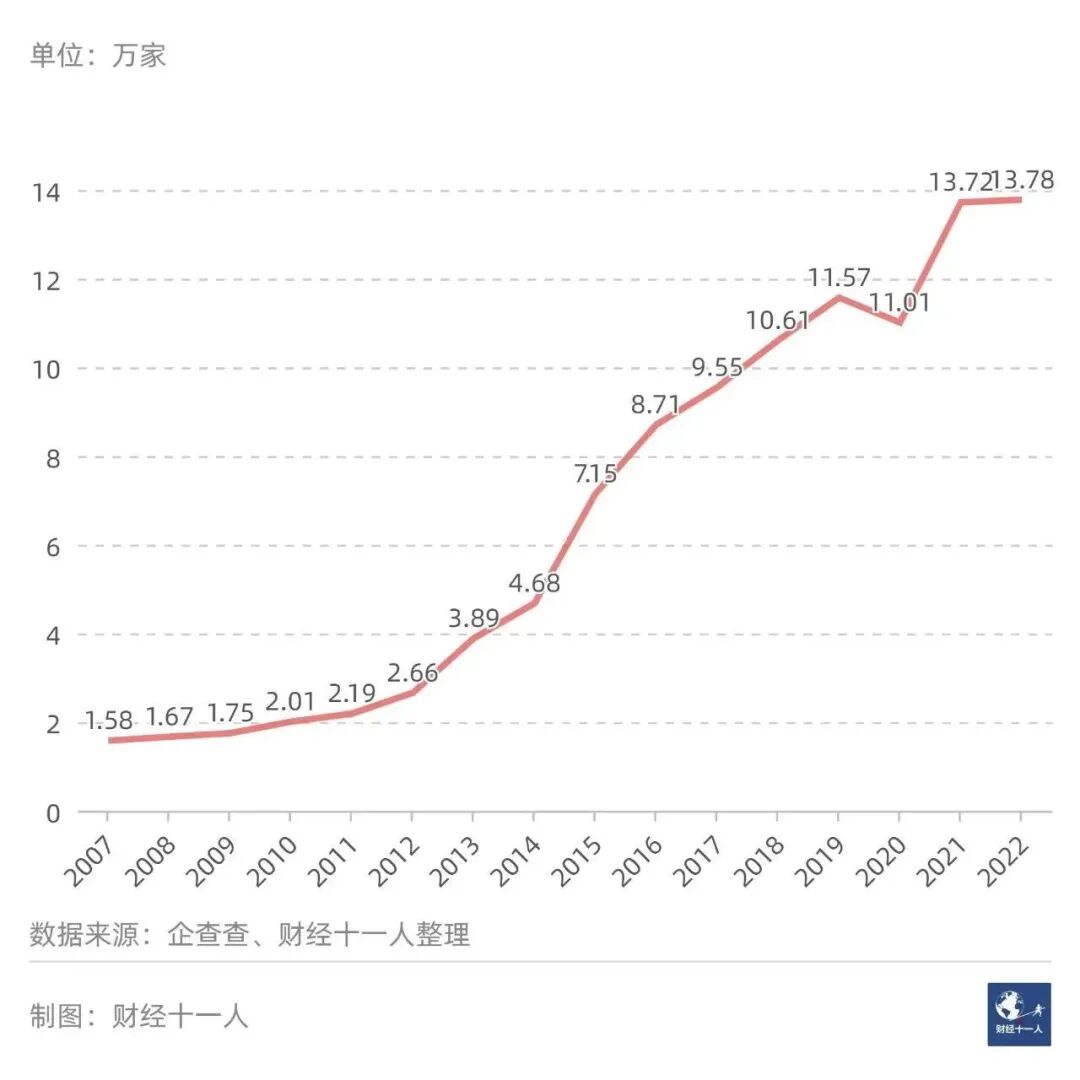 圖2: 2007年以來,全國每年新注冊的餐飲企業數量
