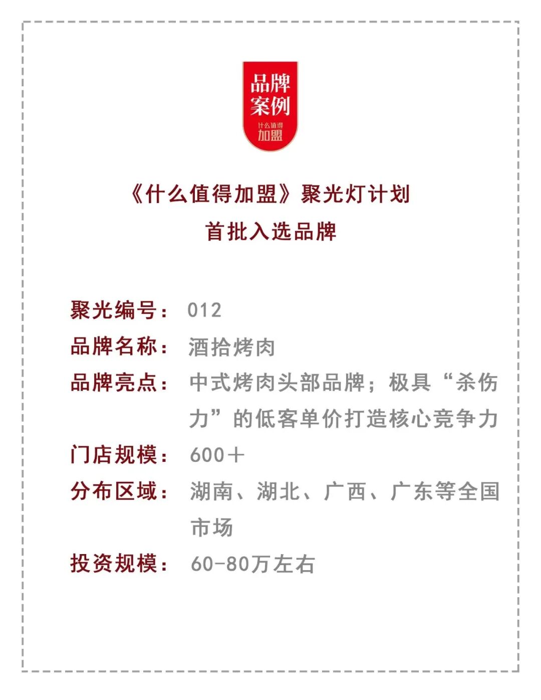 《什么值得加盟》“聚光燈計劃012期”,我們來聊聊“酒拾烤肉”這個烤肉頭部品牌快速增長的秘訣。