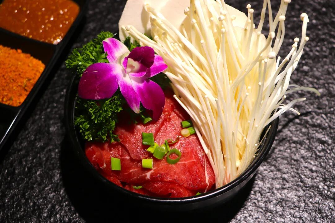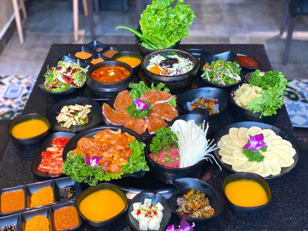 除了這些,還有開胃可口的小菜,多種烤肉小料、清甜軟糯的南瓜粥,連炭火和包肉的生菜也有