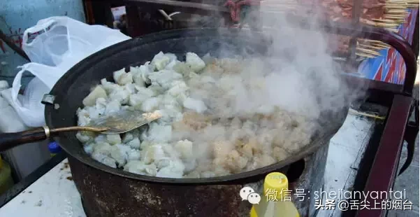 相傳一百多年前,有門氏兩兄弟來煙臺曬粉條,有一次剛將粉胚作好,遇上了連陰天,粉條曬不成,粉胚要酸壞,情急之下,門氏兄弟將鄉親們請來用油煎粉胚,加蒜拌著吃,吃后異口同聲說好吃,有風味。于是便幫門氏兄弟支鍋立灶煎粉胚賣,人們都說好吃,但問此食品叫什么名,誰也說不出。其中一智者認為此品是門氏兄弟所創,又用油煎燜,就脫口而出叫“燜子”。