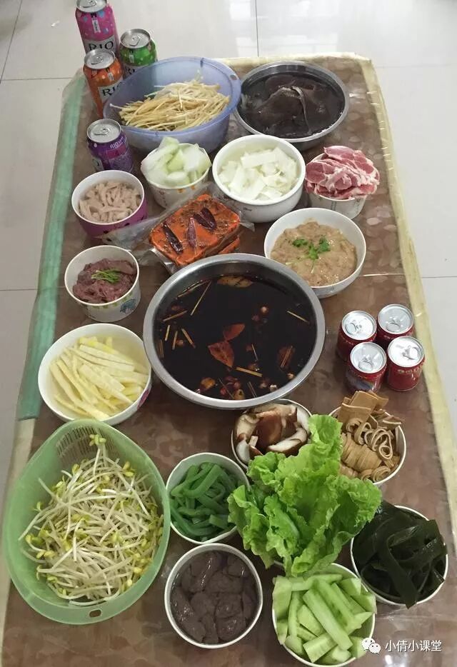 1.準備食材,火鍋底料、火鍋紅油、毛肚、鵝腸、黃喉、肉片、青菜、豆芽、筍子、豬腰、鴨血、都干、冬瓜,想吃什么就準備什么。