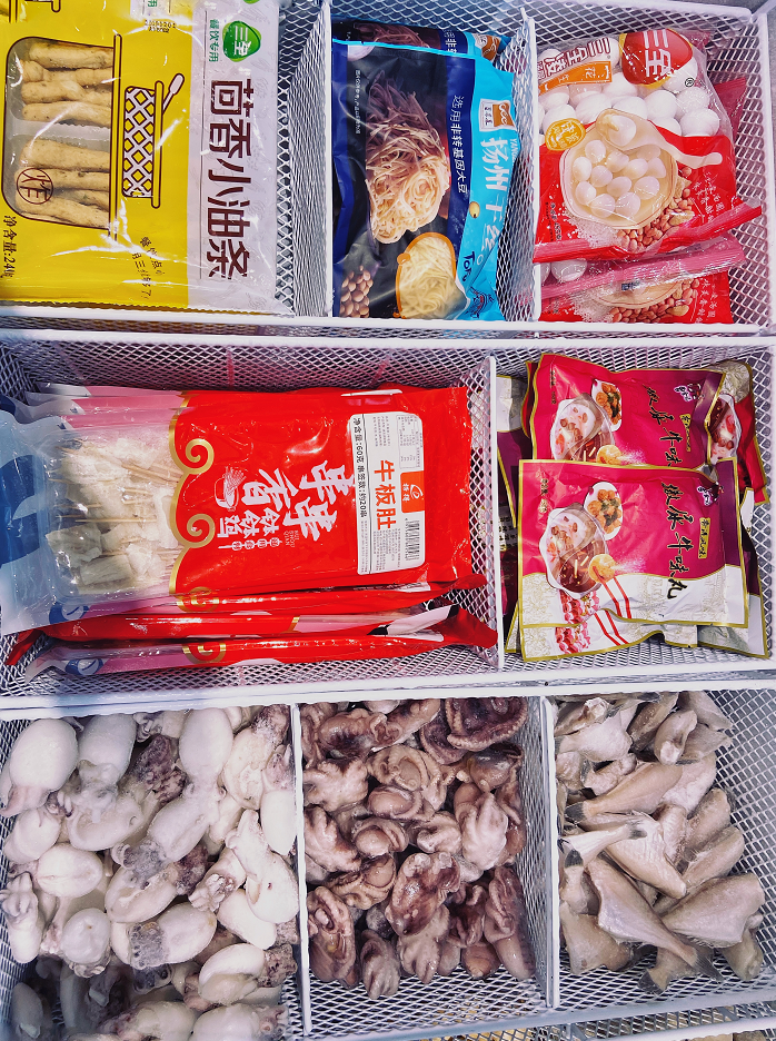 種類繁多,將各種火鍋燒烤食材一網打盡