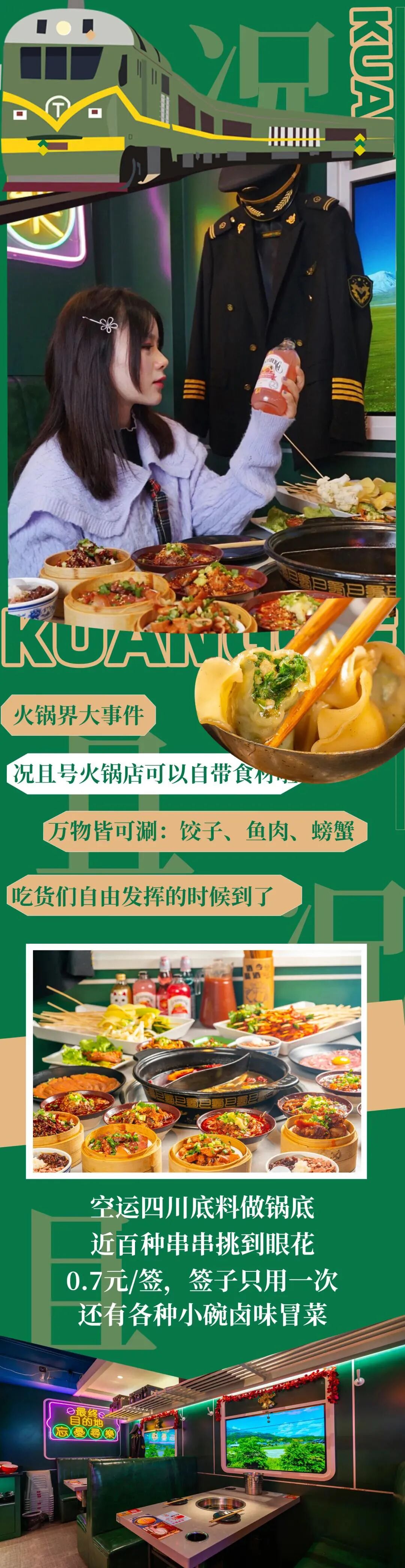 號外!火鍋界大事件!火遍魔都各大網絡平臺的況且號火車主題火鍋店可以自帶食材啦!萬物皆可涮,帶你玩轉火鍋新吃法!