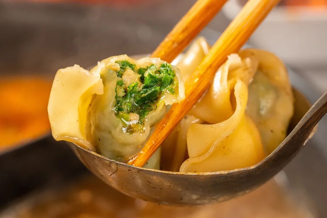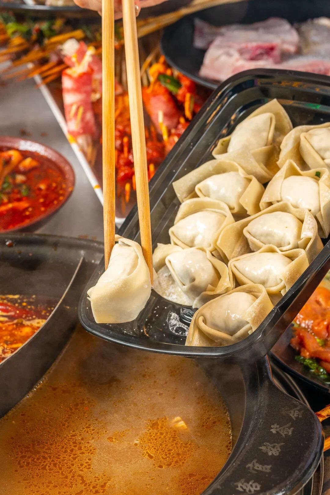 薄皮鮮肉的餃子在火鍋里翻騰,吸飽了湯汁,入口是菜香、肉香和火鍋香的完美融合,一吃就停不下來!