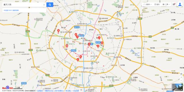 至于這兩者之間的區別,可以從鍋底到蘸料甚至燙菜都有許多的不同,就不一一稱述,在這里直接引用兩位知乎網友在“重慶火鍋和成都火鍋有什么區別?”問題下的回答來說明區別,并且附上有趣的百度地圖搜索圖。