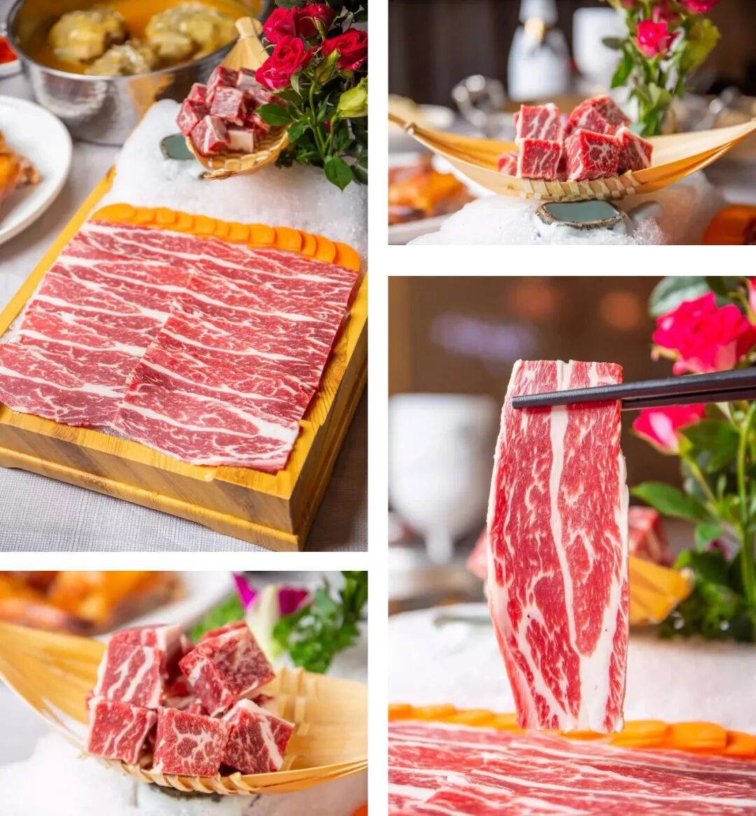 “牛肉船”上鋪滿美國牛小排,雪花肉紋美如畫,牛肉嫩香好吃!