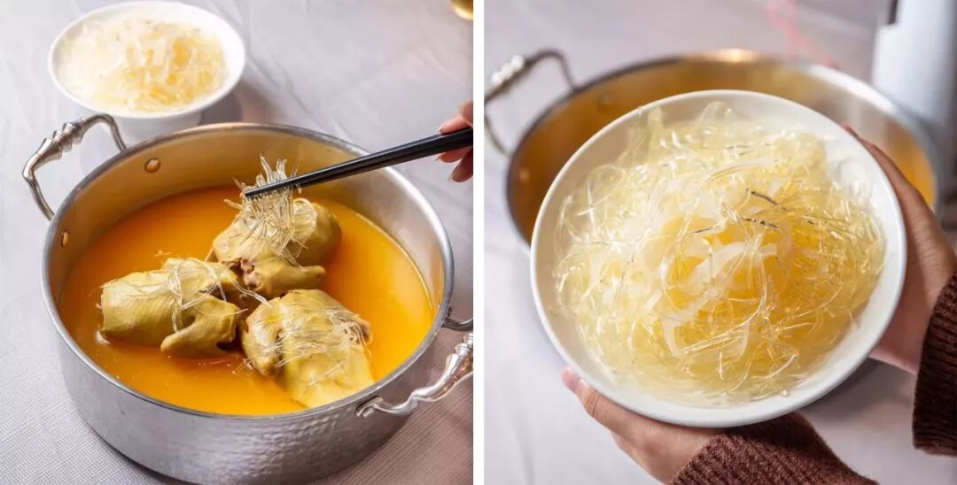 就連湯底也下足了功夫,要用鴿子、老母雞、瘦肉、翅骨、雞腳、火腿等等10多種食材,熬制12小時以上,滿滿全是精華!主廚說了,這鍋底,全上海別家都吃不到的!