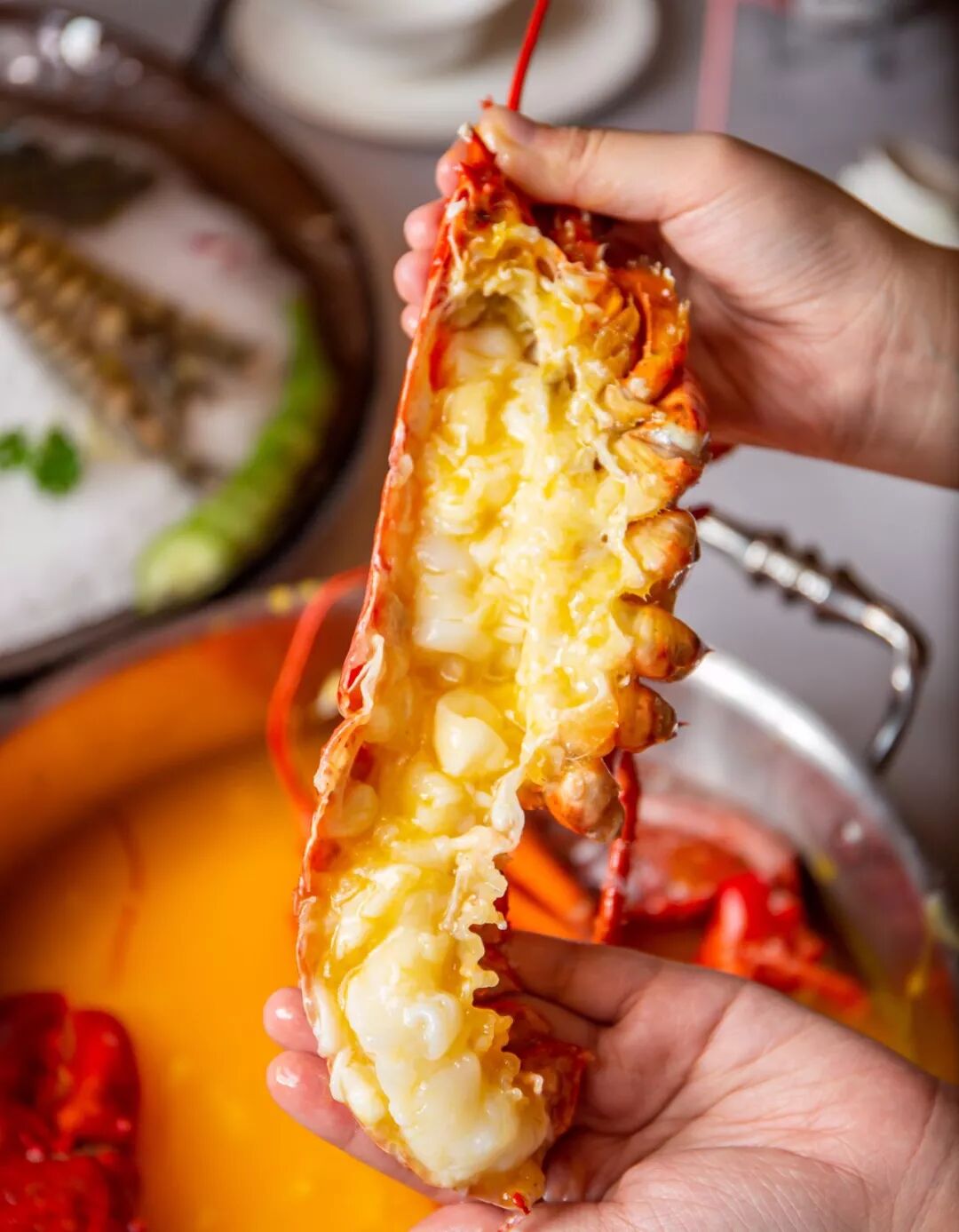 龍蝦火鍋鍋底他們家竟然真的真的真的放了一整只波龍,個頭大到霸占了整個鍋子!