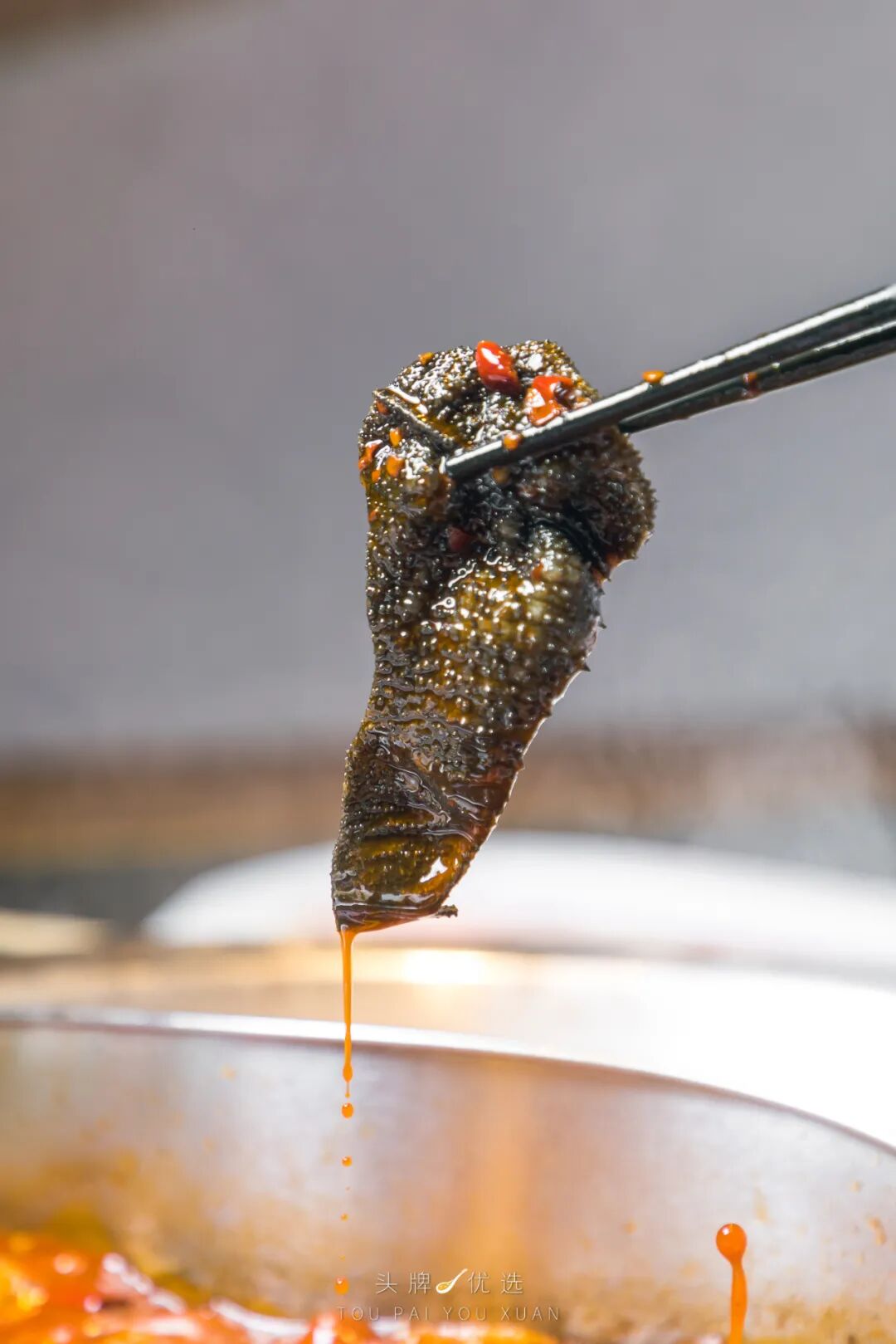 別看它“黑抹布”式的其貌不揚,涮煮過后的掛汁能力確實一絕,毛肚上的小刺牢牢抓住鍋底的香辣,蘸取帶著特制香油的醬料,送入口中細細品味,咀嚼時的爽脆感不斷刺激大腦分泌多巴胺,真的太讓人滿足了!