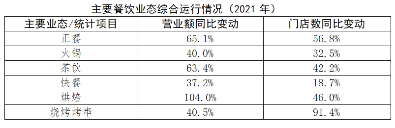 總體而言,2021年全國餐飲行業發展得到一定恢復;但受到疫情反復與多點暴發的影響,全年餐飲收入增速放緩,尚未完全回到疫情前水平。其中,1-3月因疫情形勢總體平穩、各地有序恢復堂食經營,全國餐飲業收入增勢明顯,并在3月迎來全年增速高峰;而自4月份開始,受到“奧密克戎”境外變異毒株輸入的影響,餐飲業正常運營受到一定沖擊,營業收入增速因此放緩。