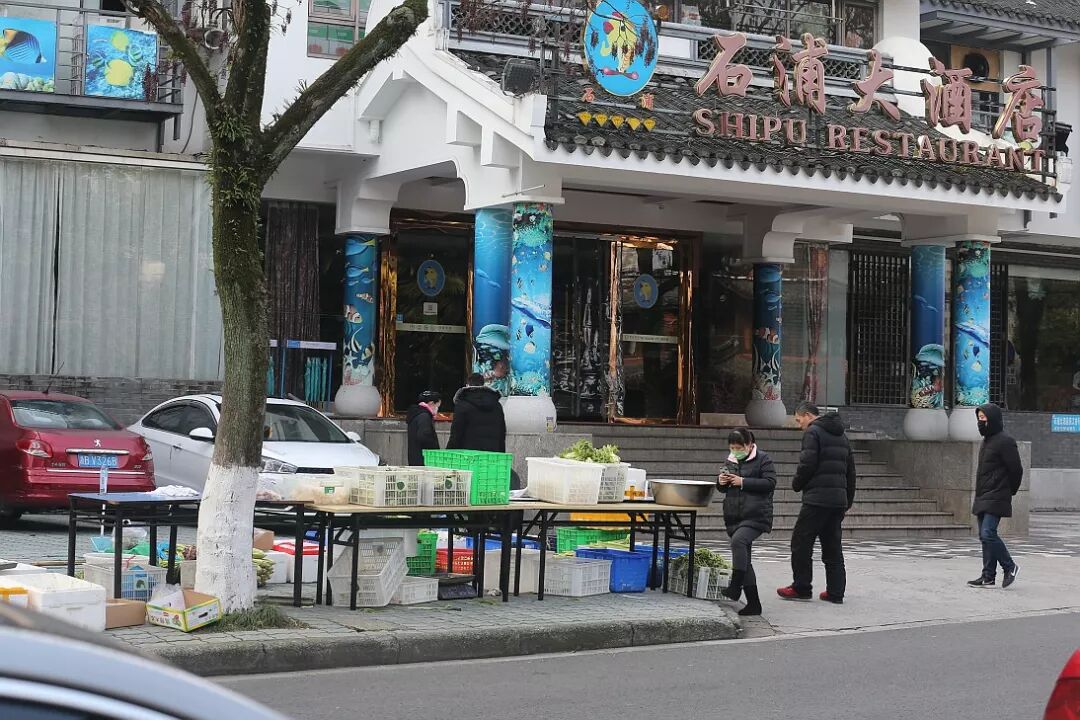 記者了解到,石浦大酒店月湖店已經暫停營業,何時開業需要等候進一步通知。前幾天,酒店工作人員在門口擺攤,出售一些之前準備的食材,而現在這些食材都已經賣完。