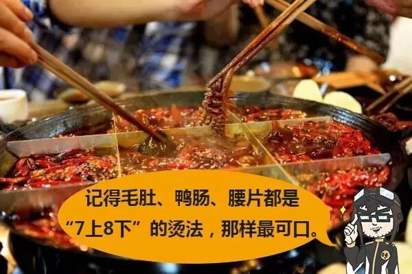 重慶火鍋雖然是平民美食,似乎不可能像吃西餐那般有嚴謹的流程,但其實你要品嘗正宗的重慶火鍋,還真的是有套路的,首先油碟就要地道,香油+蒜泥是最標準的,頂多再有醋、蔥、芫荽,而至于什么腐乳、麻醬、沙茶醬,那都是其他地方口味而已。而接下來先葷后素的煮菜順序能讓素菜更有味,毛肚、鴨腸七上八下的燙煮規律也能保證食材的上佳口感,如果你讓鴨腸煮成了麻繩、毛肚煮成了抹布,那真不能怪它們不好吃了。