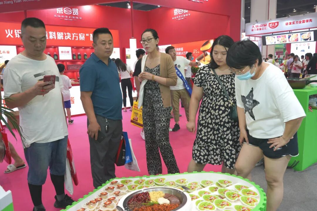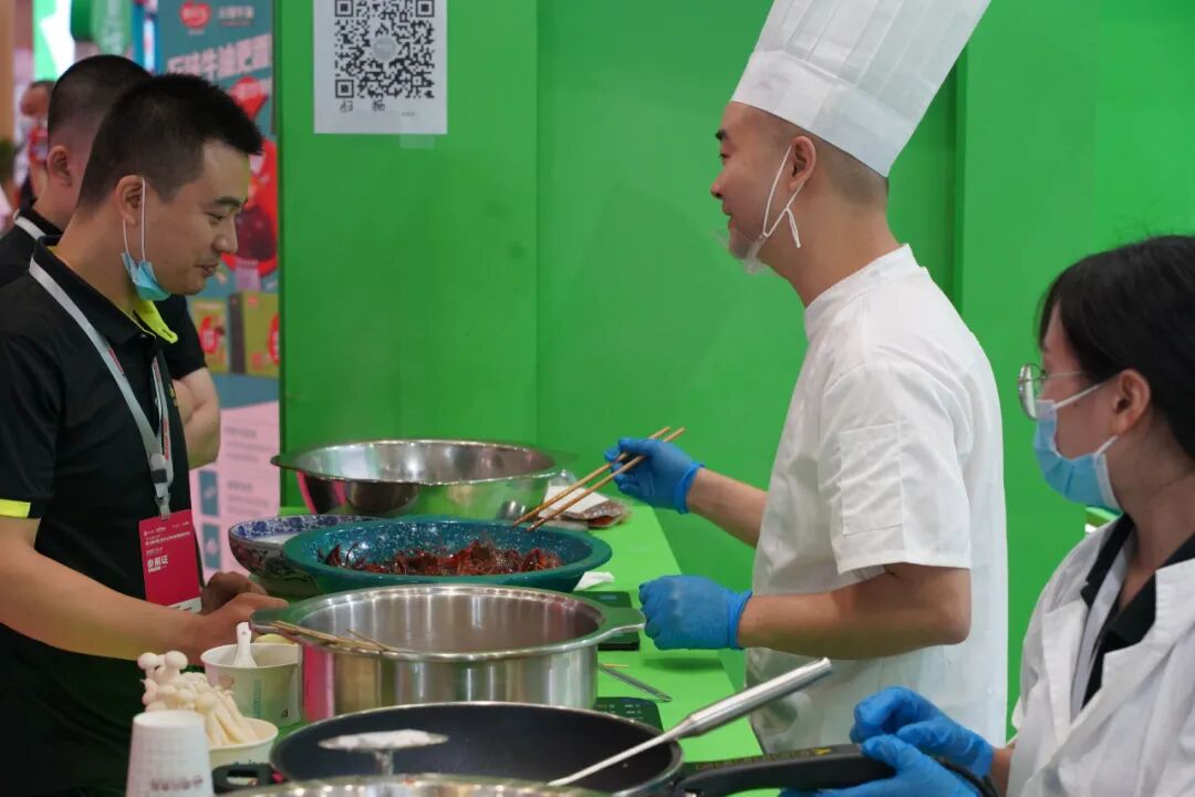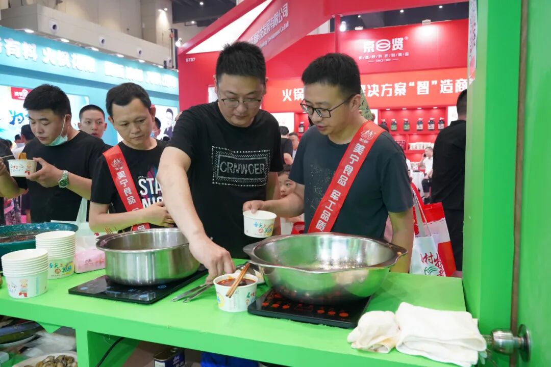 參觀者可以通過試吃更加直觀的體驗每款新品的特點,研發人員根據客戶需求,為客戶做了鍋底升級和賦能方面的介紹,讓客戶對張兵兵產品產生了濃厚興趣。