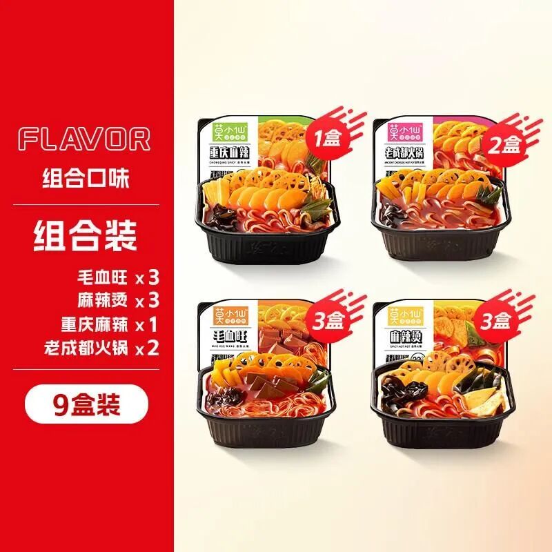 莫小仙自熱小火鍋,是一款讓你隨時隨地享受美味火鍋的方便食品。一箱包含9盒大份量,足夠你和朋友一起分享。這款自熱小火鍋采用優質食材,搭配秘制麻辣湯底,讓你感受到濃郁的川味火鍋。它還具有快速加熱、方便攜帶、不粘鍋等優點,是你理想的快餐夜宵選擇。