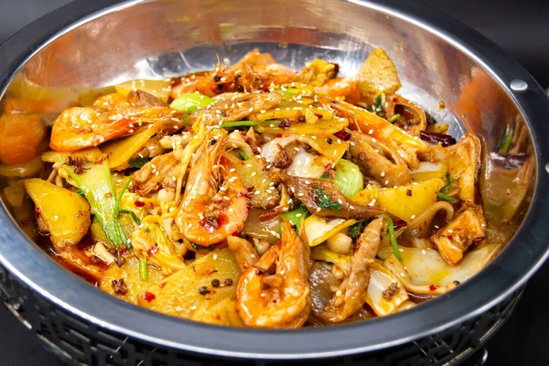 4、代表菜品:干鍋牛蛙、干鍋肥腸、干鍋鴨頭、干鍋排骨、干鍋雞胗、干鍋麻花大蝦等等。