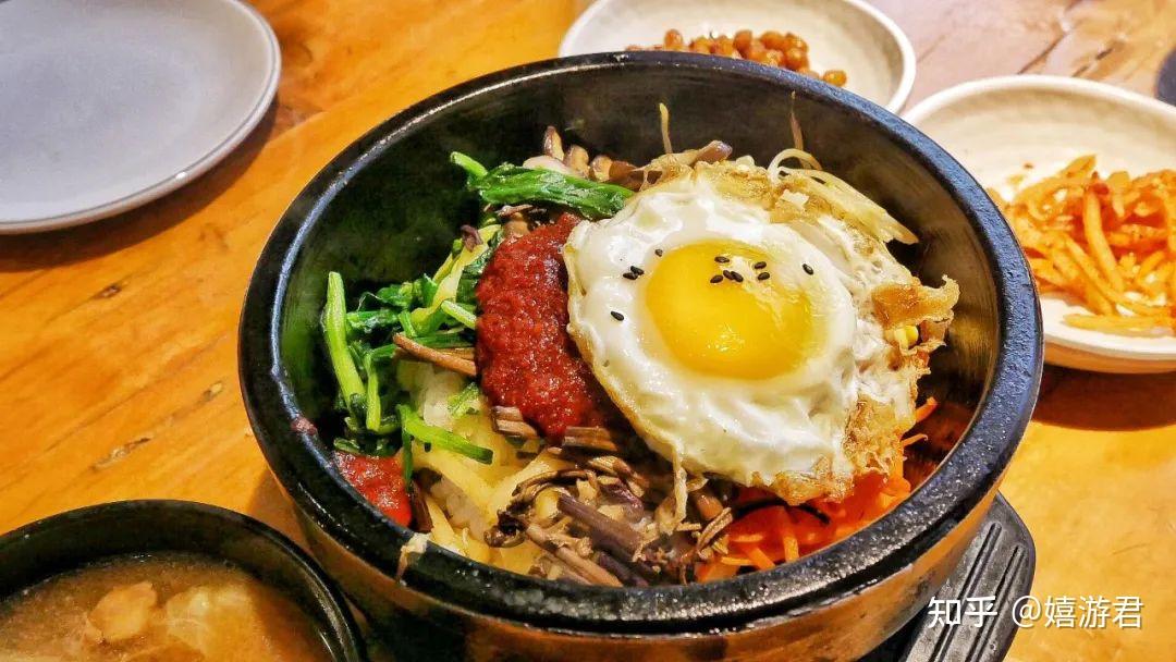 用石鍋的余溫不斷加熱米飯,形成的鍋巴金黃焦脆,簡直就是石鍋拌飯的精華,再用溏心蛋和各色配菜拌在一起,每一口都是享受。