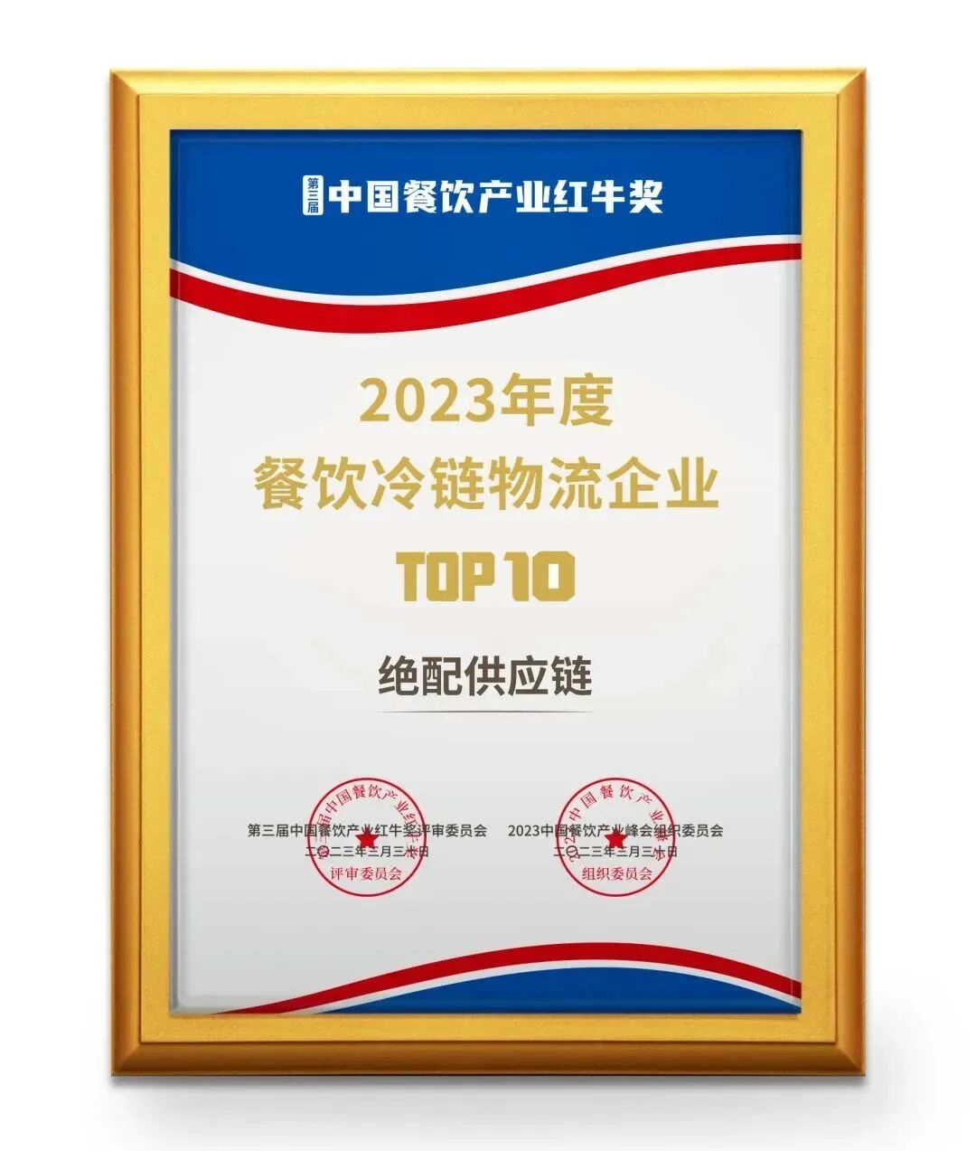 實力印證丨絕配供應鏈獲“2023年度餐飲冷鏈物流企業TOP10”榮譽