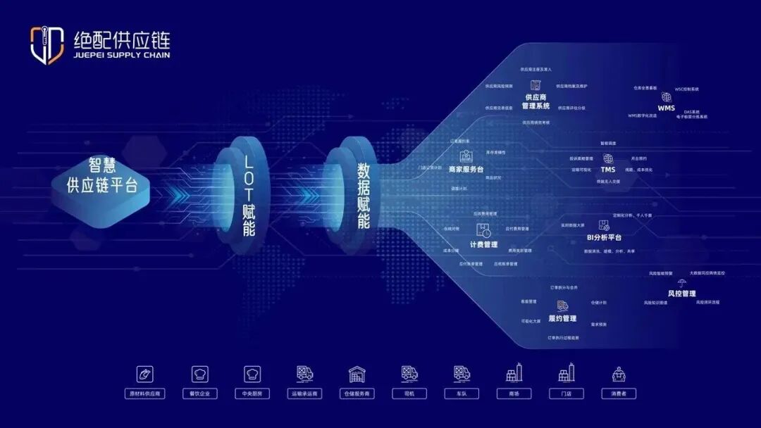 絕配供應鏈IT團隊自主研發的的“智慧供應鏈平臺”, 包含“服務平臺”、“運營平臺”、“執行平臺”和“數據平臺”,幫助餐飲企業實現了對物流資源、全渠道訂單、倉庫、運輸、銷售等的整體協調、管控和優化,打通了供應鏈上下游的信息壁壘,協同供應鏈上下游不同作業環節,打造出了可視化、數字化、透明化的一體化供應鏈管理體系。為企業降本提效的同時,助力餐企企業向數字化供應鏈智慧轉型升級。