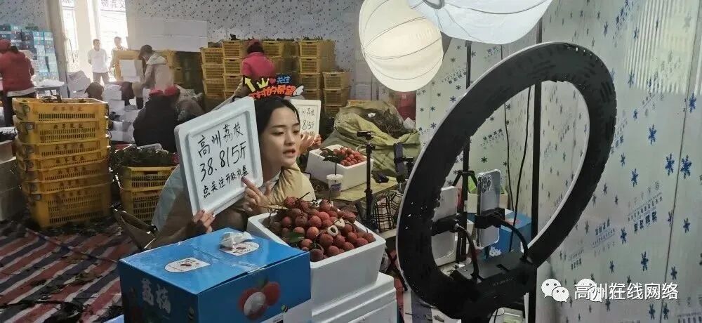 而市供銷農業科技產業服務中心的工作人員把直播間直接搬到了分揀包裝現場。一邊,是工作人員正在將荔枝分揀、過稱、裝箱、再用定制的包裝盒進行打包,運入倉庫,最后再根據訂單發往全國各地。另一邊,主播通過鏡頭向觀眾直觀展示荔枝的品質,同時賣力地介紹荔枝的產地、賣相、口感以及促銷優惠,在他們的吆喝下,訂單紛至沓來。