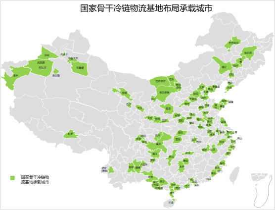 根據以上政策文件分析可知,我國當前最重要的冷鏈物流布局體系為國家骨干冷鏈物流基地以及以農產品為重點的農產品骨干冷鏈物流基地。在國家骨干冷鏈物流基地的布局中,共有106個承載城市入選,作為綜合性的冷鏈物流基地,超七成與國家物流樞紐承載城市布局重合,即冷鏈物流基地106個城市中,有70個城市既是國家骨干冷鏈物流基地,又是國家物流樞紐承載城市。充分展示了兩大重點物流節點布局相輔相成,共同支撐起了全國領域的物流核心基礎設施建設。