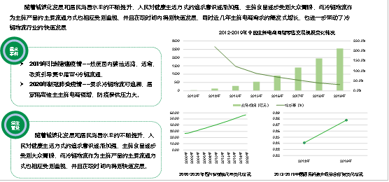 此外,還隨著新冠肺炎疫情在全球不斷蔓延,疫情未來走勢仍不明朗不確定,作為疫情防控重要物資的疫苗等醫藥產品至關重要,而其存儲運輸等環節都離不開冷鏈物流的助力,冷鏈物流在生產、生活等各個環節作用不斷加強。