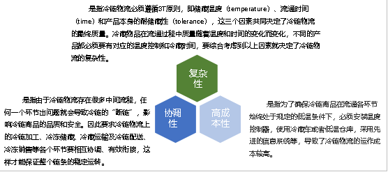 冷鏈物流的特點包括了復雜性、協調性、高成本性三個基本特征。復雜性是指冷藏物品在流通過程中質量隨著溫度和時間的變化而變化,不同的產品都必須要有對應的溫度控制和冷藏時間,要綜合考慮到以上因素就決定了冷鏈物流的復雜性。協調性是指由于冷鏈物流存在很多中間流程,要求冷鏈物流上的各個環節要相互協調、有效銜接,這樣才能保證整個鏈條的穩定運轉。高成本性是指為了確保冷鏈商品在流通各環節始終處于規定的低溫條件下,必須安裝溫度控制器,使用冷藏車或者低溫倉庫,采用先進的信息系統等,導致了冷鏈物流的運作成本較高。