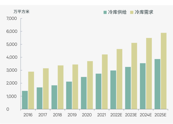 總的來看,當前我國冷庫市場仍處于早期發展階段,無論是從冷庫的整體供應量、還是冷庫品質,都不能滿足市場需求。隨著國家重視程度的加深和居民消費升級訴求的增強,對健康飲食方式和食品質量關注度不斷提升,生鮮食品及冷凍食品的需求將快速增加,冷鏈物流的潛力將不斷釋放,這將著重增加對高標冷庫的訴求。根據專業機構統計,高標冷庫的主要客戶90%以上是食品相關領域。連鎖餐飲、商超零售以及進口食品等領域未來均將保持持續增長的趨勢,為高標冷庫創造了巨大的需求空間。而目前,高標冷庫在冷庫總體供應中的占比不足1/3,預計十四五期間需求將超過450萬平米的新增高標冷庫。