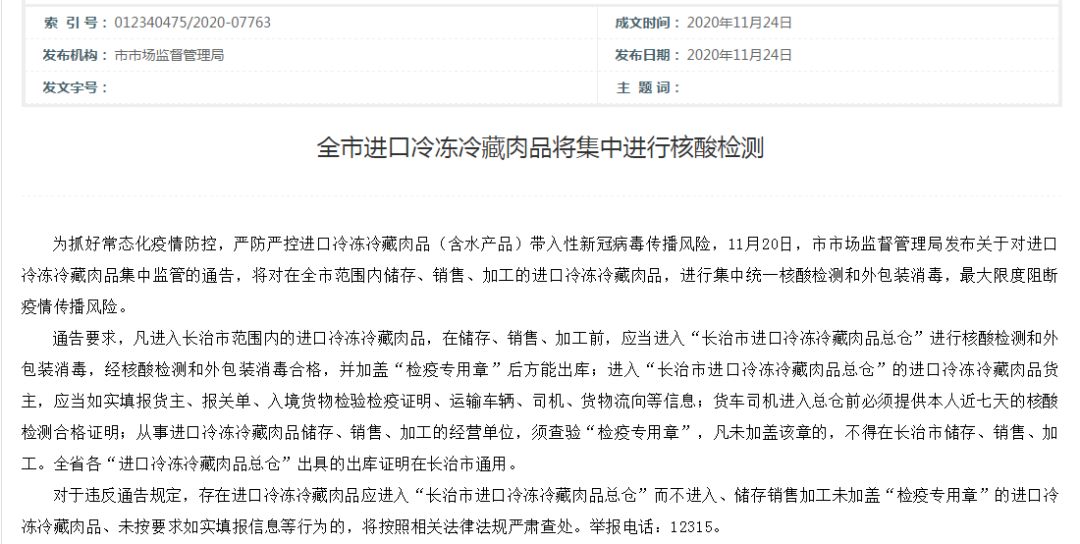 警惕 !山西一冷鏈食品弱陽性!長治再發重要通知: