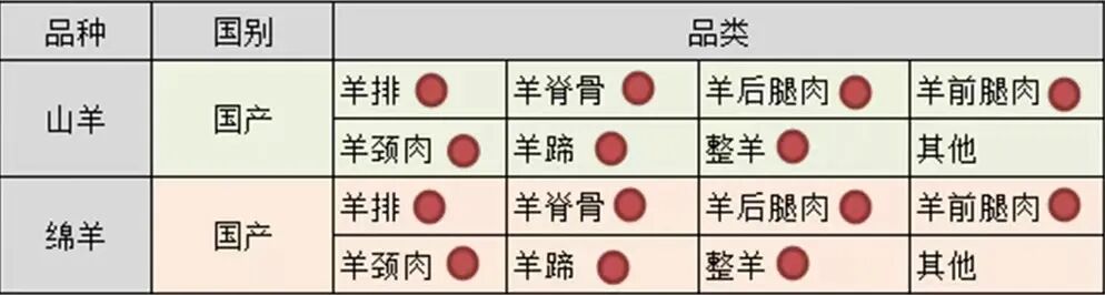 海吉星凍品市場羊肉經營品種匯總